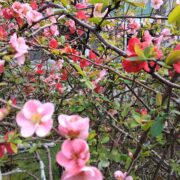 明治、 大正時代に多くの園芸品種が作出されました。 クサボケとの雑種アイノコボケに由来する栽培品種も多く区別が難しい場合があります。 トゲがあるので生垣として用いられることもあります。