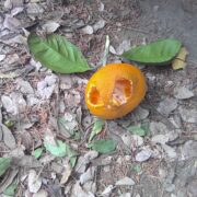 おいしいミカンは、 ヒヨドリやメジロなど甘いものに目がない鳥たちのごちそう。 ミカンをくわえて飛ぶカラスもよく見かけます。