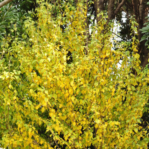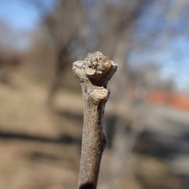 細い灰色の枝。 剪定されることが多く、 太い幹になることはありません。