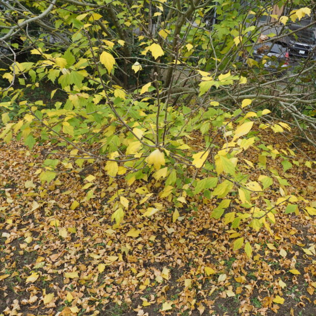 根元近くで切られることが多く、 根元から枝がたくさん出る株立ちの樹形になります。 高さは3~4mになります。