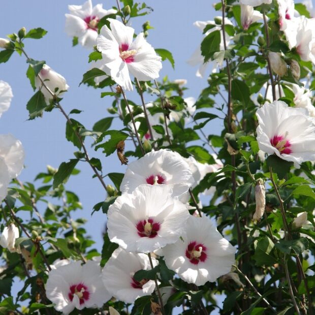 韓国では、 散って咲き、 また散っては咲く生命力の強いムクゲの花を国の繁栄を意味する花として韓国の国花にしています。