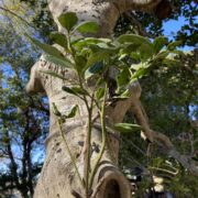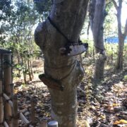 モチノキの木の皮からネバネバの鳥もちを作ります。 昔は鳥の狩りをするのに使いました(今は鳥もちを使った猟は禁止されています)。 そこからモチノキという名前になりました。 子供達は鳥もちを使って虫などをとって遊びました。