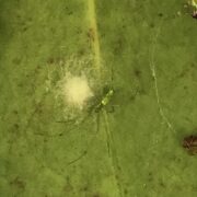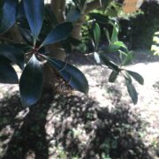 葉が数枚つづられ茶色になっているのは、 モッコクの葉を食べるモッコクヒメハマキ(モッコクハマキ)という小さなガの幼虫のしわざです。