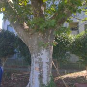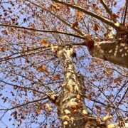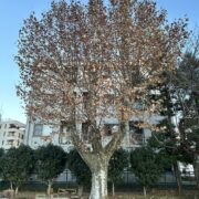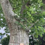 北アメリカ原産のスズカケノキです。 プラタナスとも呼ばれます。 日当たりのよい場所が好きで、 広い場所ではとても大きくなります。 近い仲間のモミジバスズカケノキもよく植えられています。