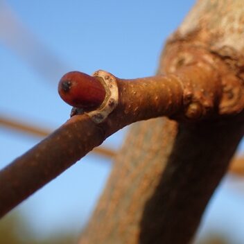 冬芽は葉柄内芽と言って、 柄の中で芽が作られます。 冬芽が完成したら、 キャップが外れるように柄が落ちます。 落ち葉を拾って柄をみてみましょう。