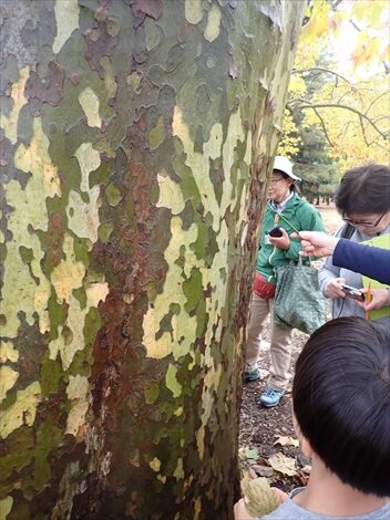 樹皮は若木はまだらにはげ、 迷彩柄のようです。