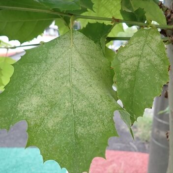 モミジバスズカケノキともに、 もともと日当たりのよい河原などが好きな木のようです。 「早く成長して大きな葉でめいっぱい光を受けたい!」と、 日当たりのよい場所ではどんどん大きくなります。 日蔭だったり、 剪定されていたりすると目に見えて生長が遅くなる、 とてもわかりやすい木です。