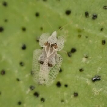 春~秋は葉裏、 秋~春は樹皮をめくってプラタナスグンバイを探してみましょう。 虫メガネで見るとガラス細工のようなきれいな虫です。