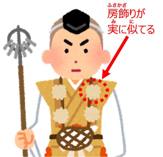 山伏の衣装の上着の部分を篠懸(すずかけ)と言い、 その房飾りが実に似ているからという説があります。