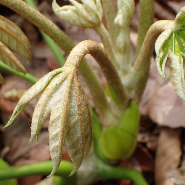 大きく、 深くさける葉っぱは「天狗の羽団扇(はうちわ)」に例えられます。