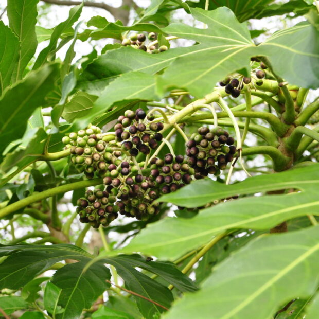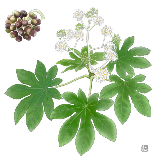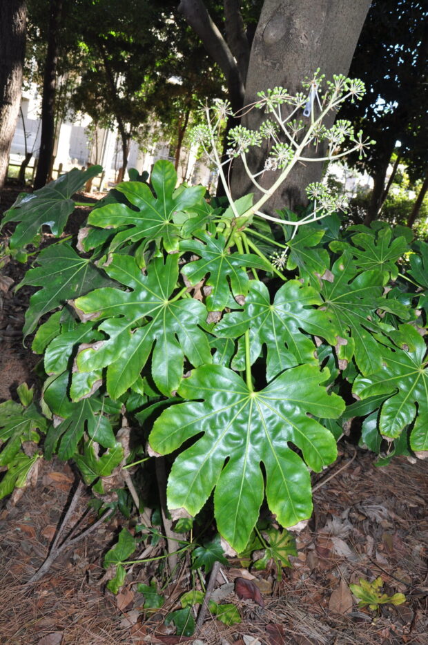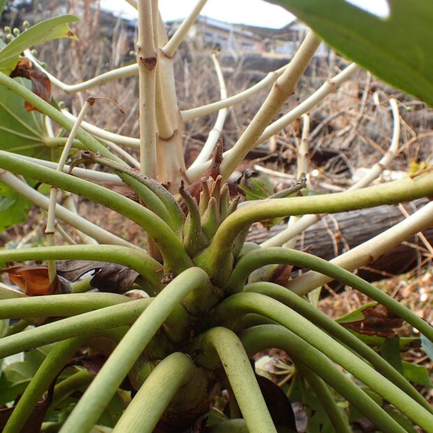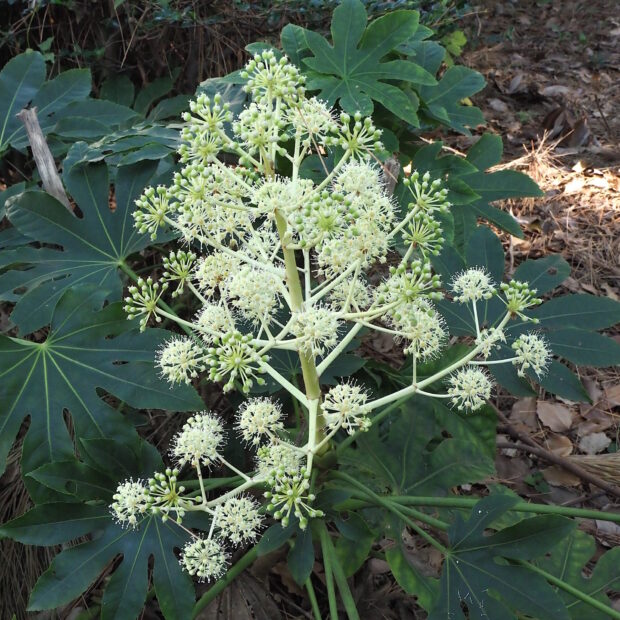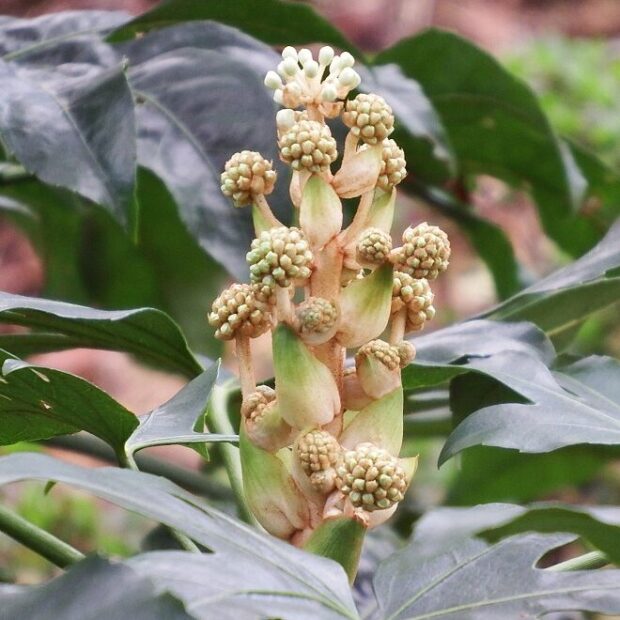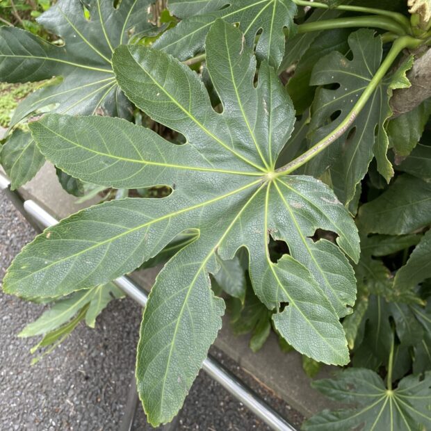 漢字表記の「八手」の八は数が多いという意味があるといいます。 実際は葉の切れ込みは5〜11と様々です。