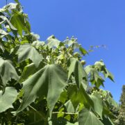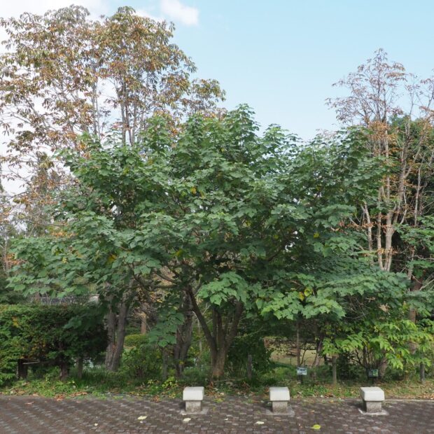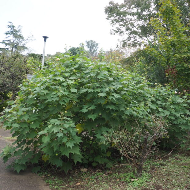 落葉低木で高さ4mぐらいになります。 夏から秋にかけて枝の上の方に花を付けます。 成長が早いので根元でバッサリ切られて坊主になることもしばしばあります。