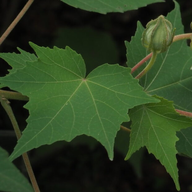 フヨウと同じく、 毛だらけの動物の足みたいな実です。 球形で熟して5つに裂け、 肉球の代わりに 毛のついた種が出ます。
