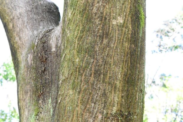 暗い灰色。 老木になると縦に裂けます。