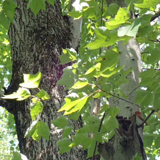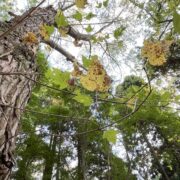 高さ30mにもなる高木。 背が高いので葉や花を観察するのが難しいです。