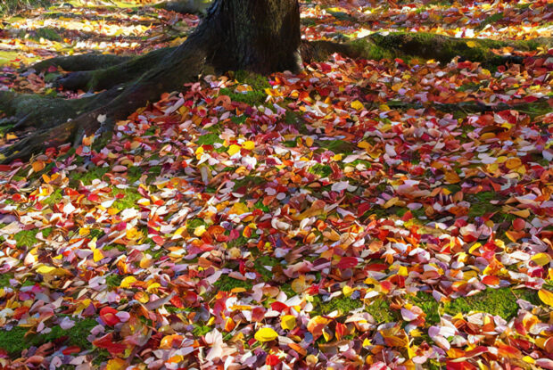山では木の背が高く見るのが難しいです。 木の下に落ちた花を見つけましょう。