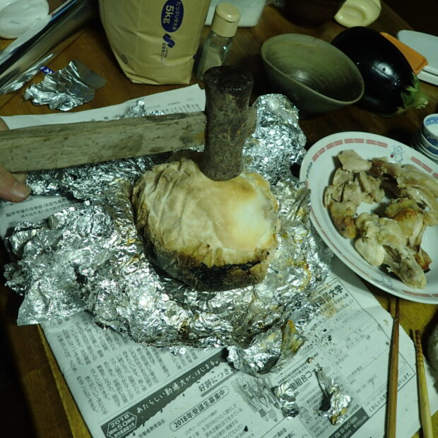 カマツカの枝で石オノを作ってみましょう。 カマツカの枝は、 手になじむ枝の太さや長さなど工夫してみましょう。 河原で石を拾い、 アサひもでしっかり結べば意外と簡単です。 石オノはキャンプで塩釜料理など割るのに使うとカッコイイですよ。