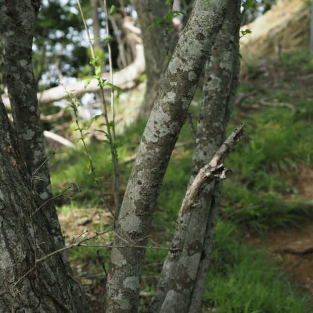 樹高3~7mになる木です。 いくつも幹や枝を出して株立ち状の樹形になります。 森のはじっこや、 畑のそばに生えています。