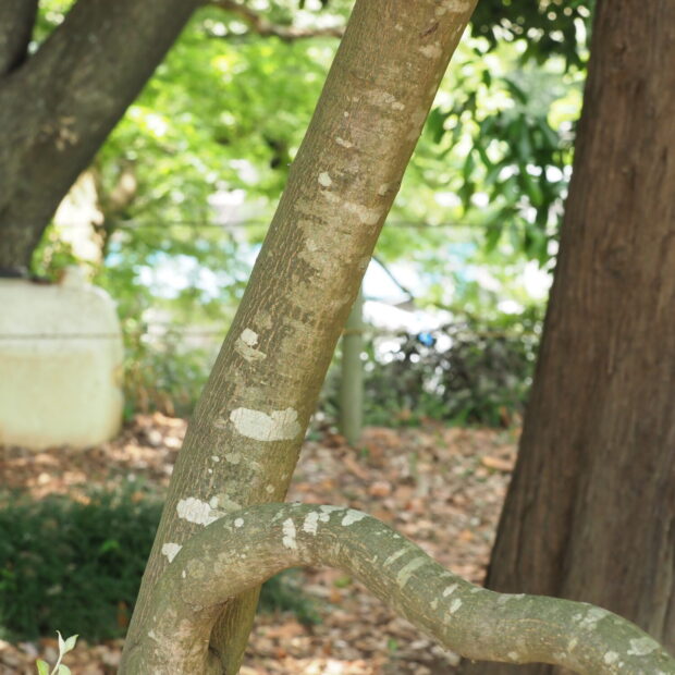 枝は折れにくく丈夫で、 しなやかに曲がり、 強くもどります。 その特性を活かして農具の持ち手や牛の鼻輪などに利用されていました。 今でも畑のそばで目にしますが、 昔は畑で農具の柄が折れたらその場で枝を切り、 修理をしていたのでしょう。