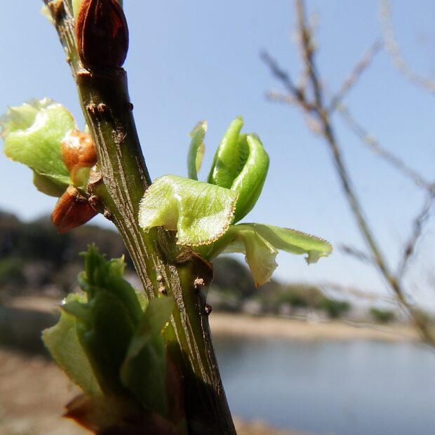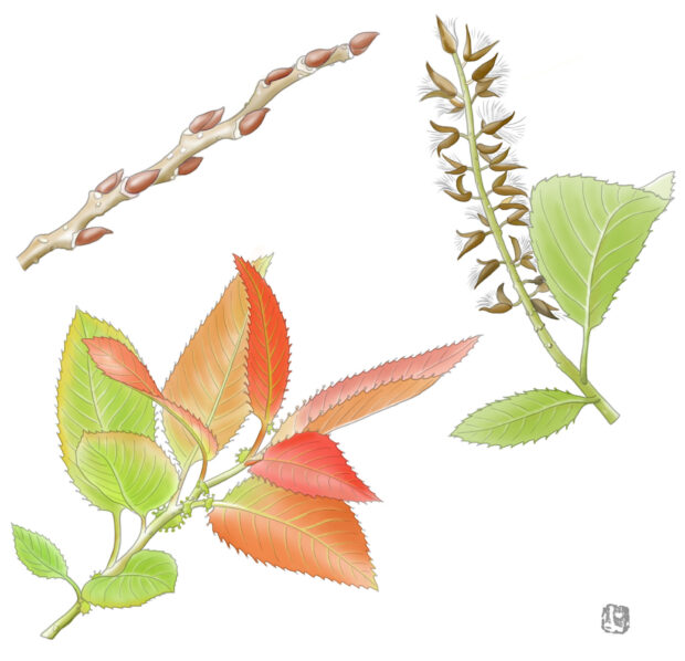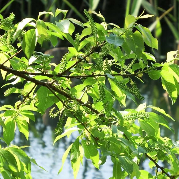 丸みを帯びた葉っぱは、 新葉がきれいに赤くなるので別名をアカメヤナギとも言います。 水辺が好きで、 池などで水につかりながらも、 枝を広げて大きくなるヤナギです。