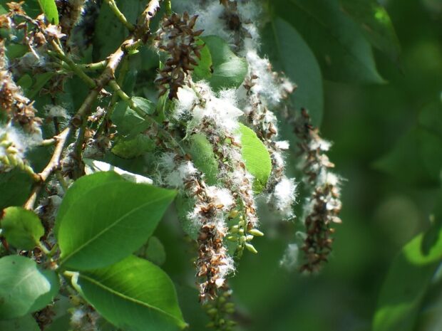 初夏に熟した実が裂けて柳絮(りゅうじょ)と呼ばれる白い綿毛の付いた種を飛ばします。