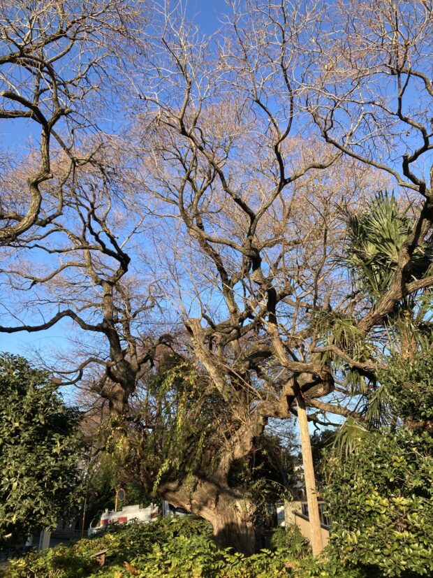 大きくなるヤナギで高さ15m程になります。 枝を大きく広げて平たい円形の樹形になります。