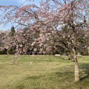 公園や庭には八重咲きの品種ヤエベニシダレがよく植えられます。