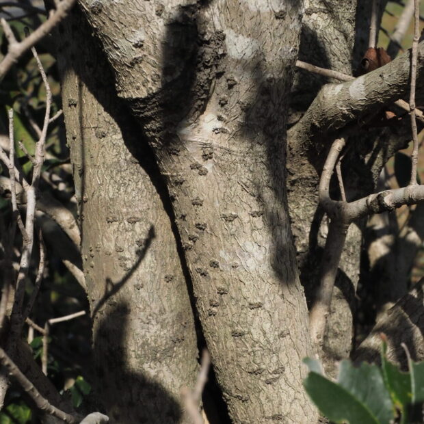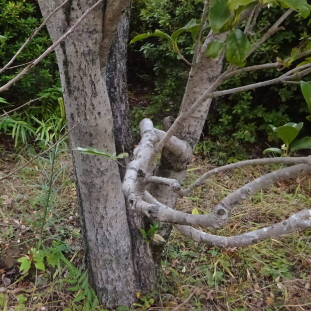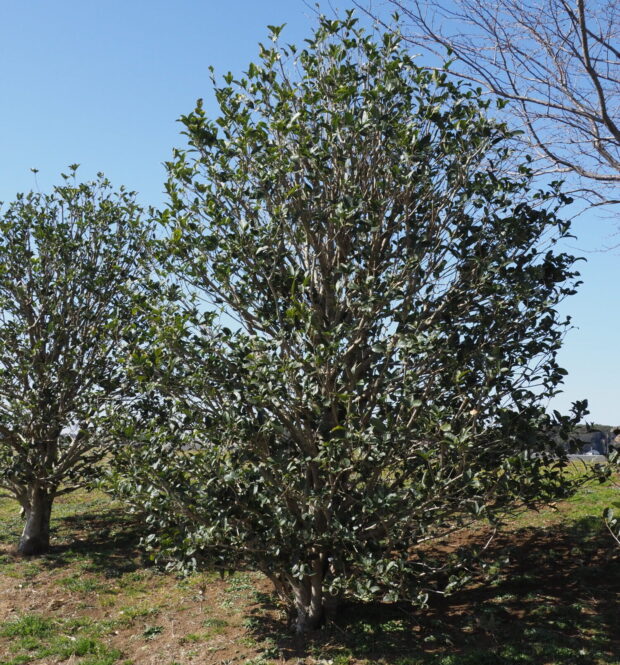 通常は高さ3~6メートル程になります。 固い葉がたくさん付いて、 こんもりとした樹形です。