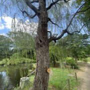 初夏~晩夏、 コムラサキという美しいチョウが、 ヤナギの周りを素早く飛びかいます。 幼虫は、 ヤナギの葉を食べて育ちます。