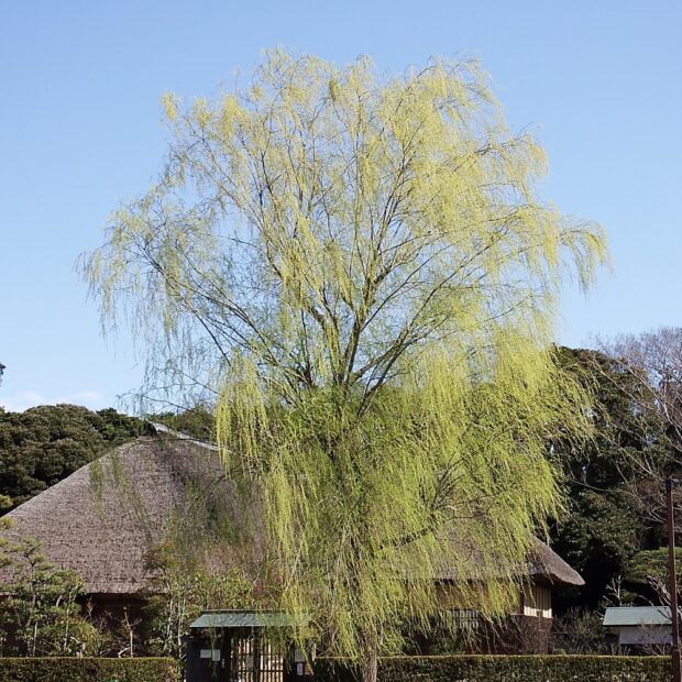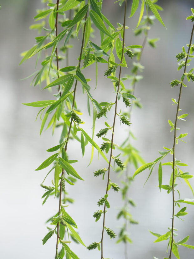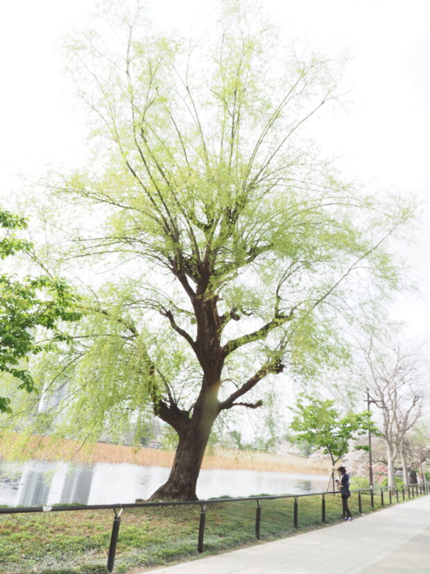 しだれる枝に細長い葉は、 かぜに靡くと涼やかで、 平安時代から街を流れる川沿いによく植えられます。