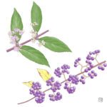 ムラサキシキブに対して木が小さいことから、 「小さいムラサキシキブ」→「コムラサシキブ」→「コムラサキ」となりました。 ムラサシキブの名は、 平安時代の有名な女性作家であり歌人としても知られる紫式部にちなんでいます。