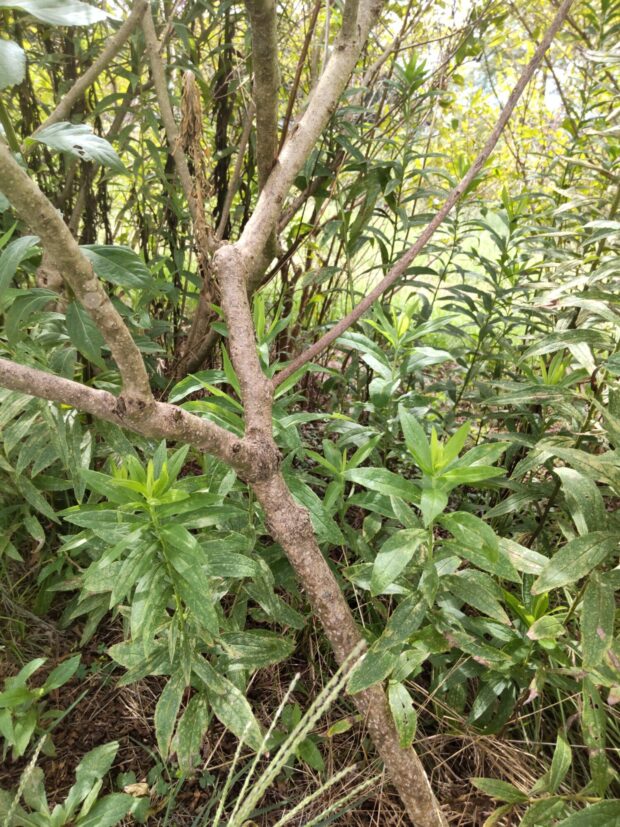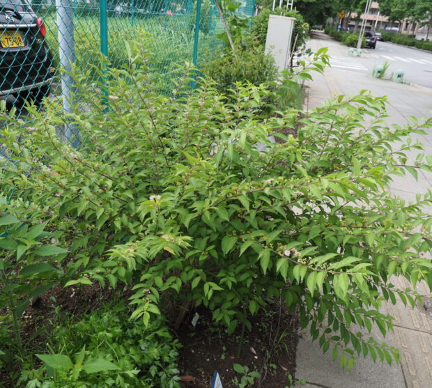 高さも幅も2メートルほどになります。 根元から幹がいくつも出て来て、 こんもりした株立ち状になります。