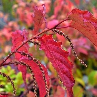 赤褐色または暗い褐色です。 枝はその年に伸びた枝は緑色か、 赤みを帯びた緑色で、 毛がなく、 光沢があります。