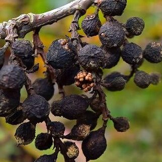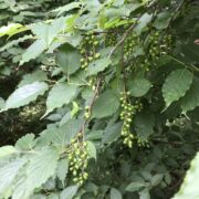 夏から秋にみのる実も、 鈴なりでよく目立ちます。 この実はお歯黒を作るのに使われました。