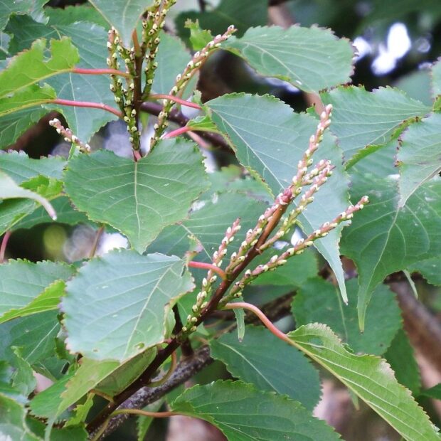 2~4mほどになります。 雑木林や林の縁、 山地の道などの湿り気と日陰のある場所を好みます。 時に高さ7mになるものもあります。