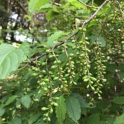 小さな花が房状にあつまってつきます。 集雄花は淡い黄色で、 雌花は雌花より緑がかっていて地味な色をしています。