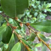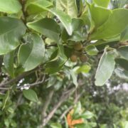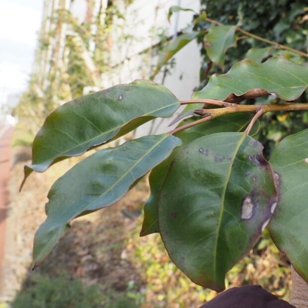 枝や葉にルビーロウムシというカイガラムシがつくことがあります。 カイガラムシがびっしりつくと、 排泄物にカビがつき、 すす病を引き起こし葉が黒くなります。