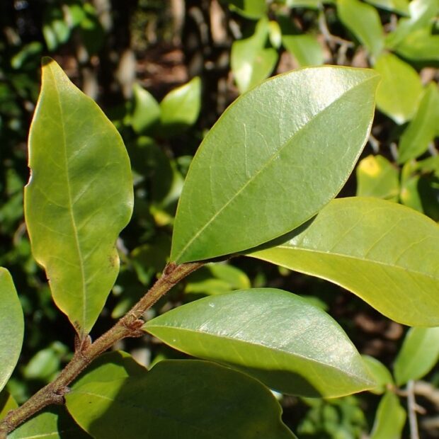 葉は互生。 葉の長さは4~8㎝で長楕円形です。 縁はやや波状になっています。