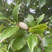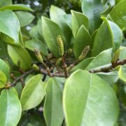 クリーム色の花はバナナのような強い香りを感じます。 近づくだけで香りが漂います。 ふわふわの冬芽は触ると気持ちがよいです。