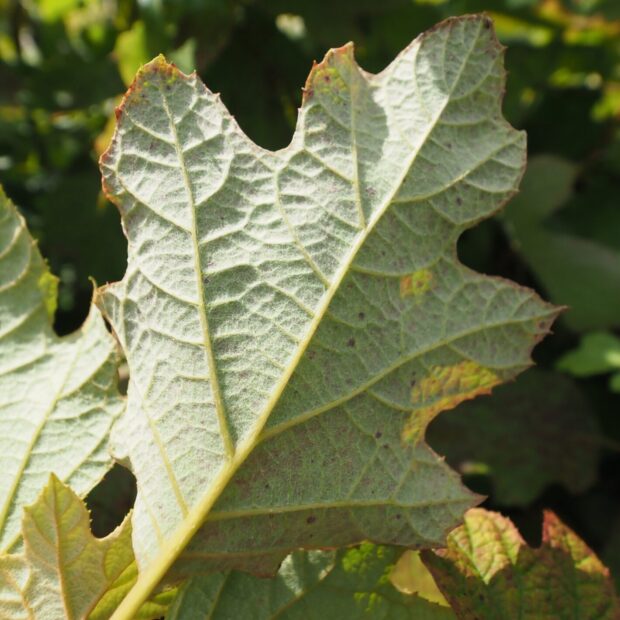 葉っぱはカシワの葉に似ています。 品種、 生きている場所、 季節によって葉の色は様々に変わります。