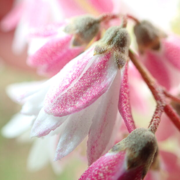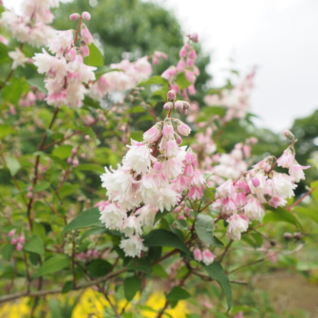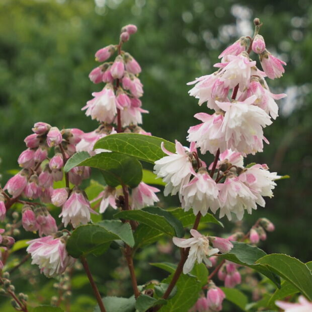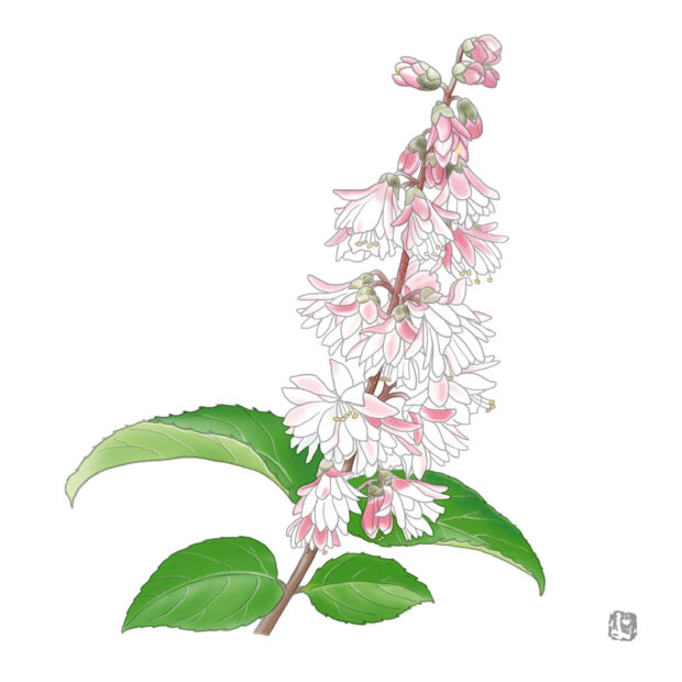 ウツギの園芸品種で古くから栽培されている木です。 花の色合いが更紗模様(さらさもよう)に似ていることから名前につきました。