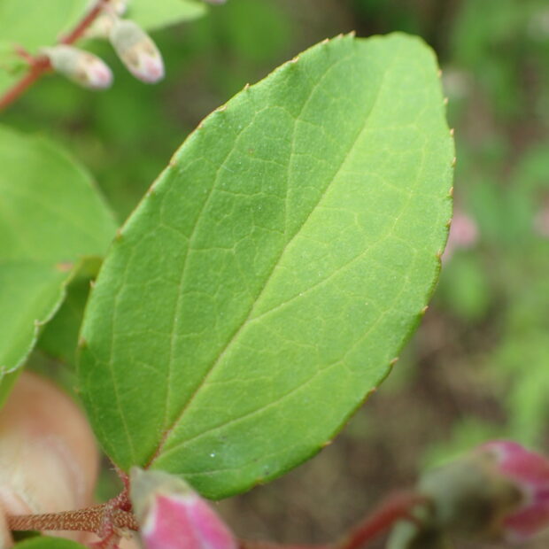 対生に付き、 先がすっと尖ります。 表面には毛があり、 ゴワゴワした独特な触り心地です。
