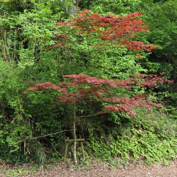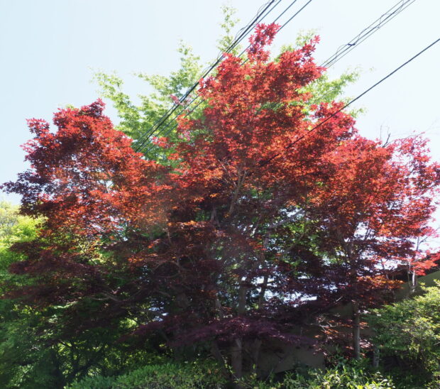 春の新芽から秋の紅葉まで、 紫がかった紅色の葉を付けます。