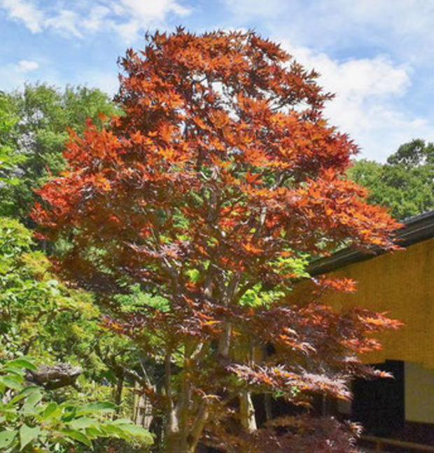 高さ10mくらいになります。 イロハモミジのように枝が横に広がりやすく、 紅く風情のある姿で庭を素敵にいろどります。