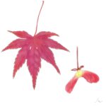紅い羽の付いた2つの実がくっついてブーメランのような形をしています。 秋に落ちる時にはクルクルと回転して落ちます。