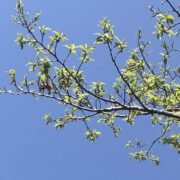 とがった卵形をした赤くきれいな冬芽を付けます。