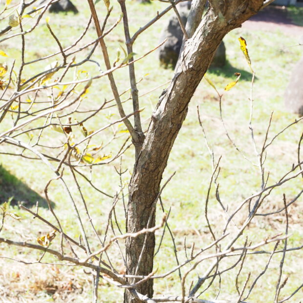 幹は灰色がかった茶色で、 縦に裂け薄くはがれ落ちます。