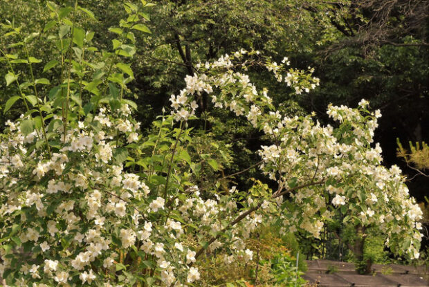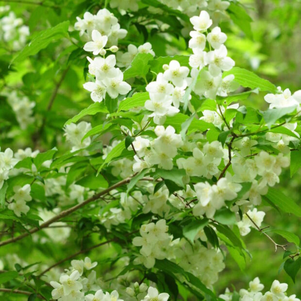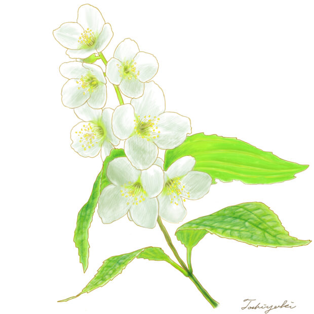 6月ごろに咲く花は白く、 ほんのり甘い香りがします。 そのため、 古くから良い香りの花木として親しまれたウメに見立てられて「梅花空木」と名付けられました。