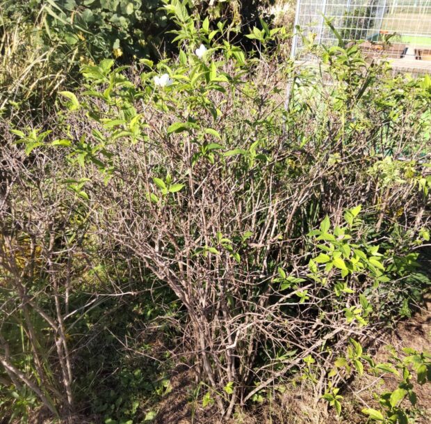 高さ1~3mになります。 冬、 枝の先っぽが枯れて次の春に2本の枝が横から伸びやすい木で、 枝が暴れやすい樹形です。