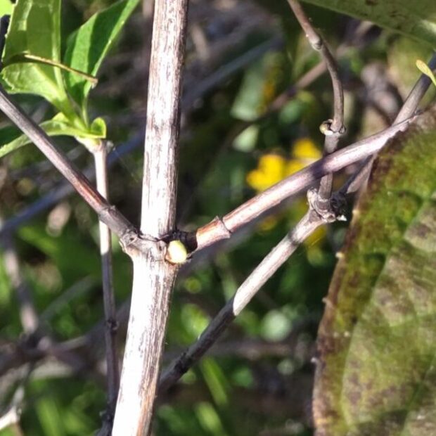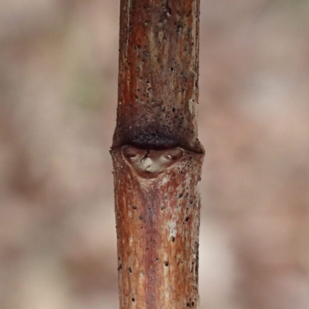 枝の横に付く冬芽が葉痕(ようこん)にかくれて見えない珍しいタイプの木でもあります。